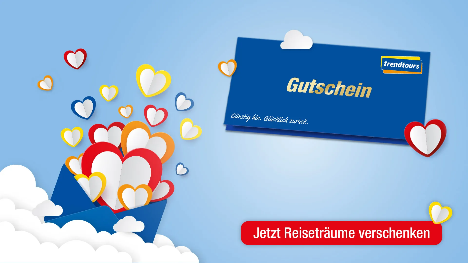 Sie sind auf der Suche nach einem ganz besonderen Geschenk zu Valentinstag? Nach etwas, das Ihrer oder Ihrem Liebsten zum Fest der Liebe garantiert ein Lächeln auf die Lippen zaubern wird? Dann haben wir genau das Richtige für Sie: Schenken Sie Reisefreude mit einem trendtours-Wertgutschein! Auf Reisen erlebt man einzigartige Momente, entdeckt die schönsten Orte der Welt und kann so richtig abschalten.